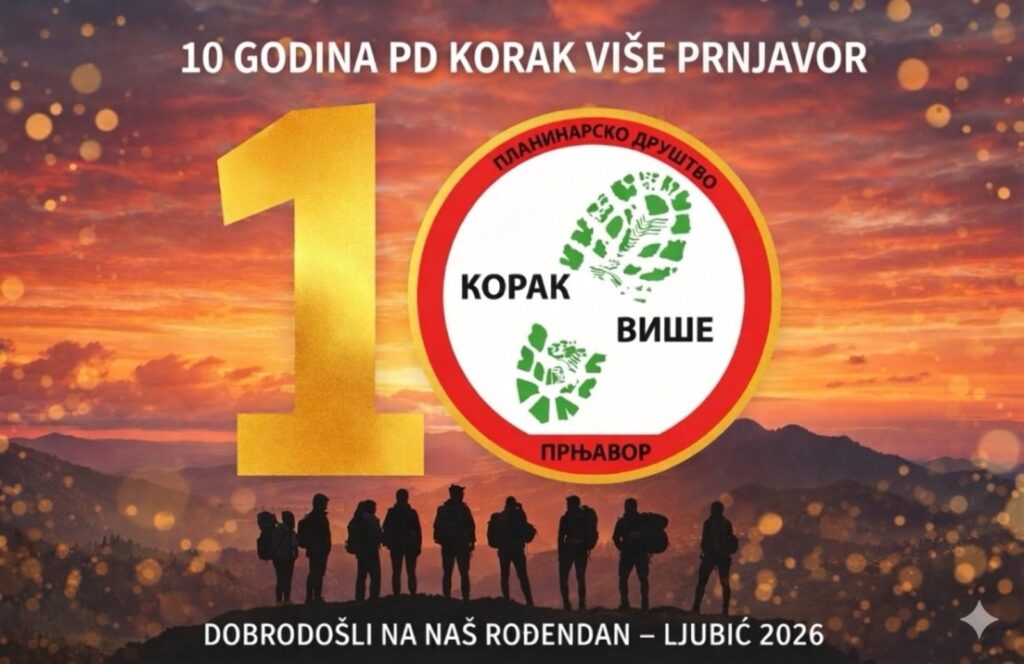 ПД “Корак Више” Прњавор поводом обиљежавања десете годишњице рада са поносом организује једнодневну планинарску акцију “Љубић 2026 – 10. рођендан”.